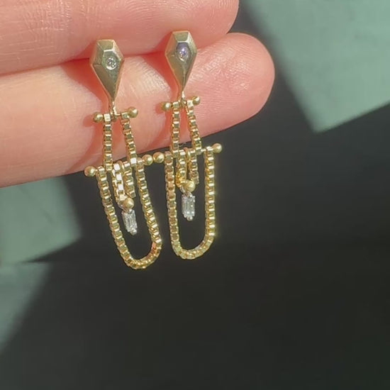 Golden Sculpt & Chain Diamond Earrings